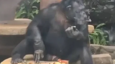 "กอริลล่า" โชว์ "พ่นควัน" ต่อหน้าผู้ชมสวนสัตว์