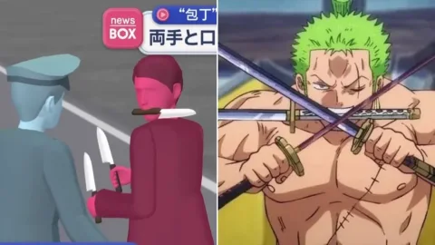 ตำรวจญี่ปุ่นจับกุมชายถือมีด 3 เล่ม โดยมี 1 เล่มอยู่ในปาก